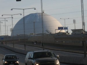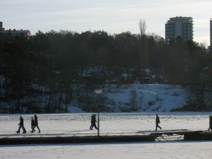 Var du ute och promenerade på isen? Det brukade vi göra när jag var ung. Nedanför Ålsten i Bromma. Det gällde att inte komma för nära rännan som plogades upp i isen av en liten isbrytare. Bilden på globen ser ut som en luftballong på väg upp.
