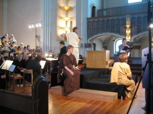 Igår sjöng vi Johannespassionen med "min kör" och orkester och det var ett sceniskt framförande som faktiskt levandegjorde inte bara Jesu lidande utan också människornas kamp och strid på liv och död, här på jorden.