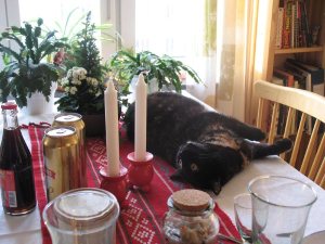 Igår samlades en stor del av min släkt, omkring 30 stycken, hos mina urgamla föräldrar för en sedvanlig juldagsmiddag, som numer arrangeras av oss barn och barnbarn som är med. Mycket trivsamt och gott och mina föräldrars våning är av modell "större", så i vardagsrummet som har två soffgrupper kan vi samlas allihop för att dricka glögg. Det roliga i det här fallet var att de två som senaste kommit in i släkten…vuxna barn till en "ny svägerska" till mig… berättade att de två gånger hade satt sig i den mindre gruppen, och varje gång hade det fallit sig så att de blev ensamma kvar utan sällskap. De skrattade mest åt historien och sa att de inte vågade sätta sig där igen, bara för det. Fast på min uppmaning gjorde det det i alla fall. Intet är ju som stilla möten på tu man hand, men i det här fallet tror jag nog att det är svårt att motstå den större mängden männniskors höga skratt och prat…Å andra sidan fick vi ju väldigt roligt när vi i det lilla sällskapet pratade just om detta fenomen.