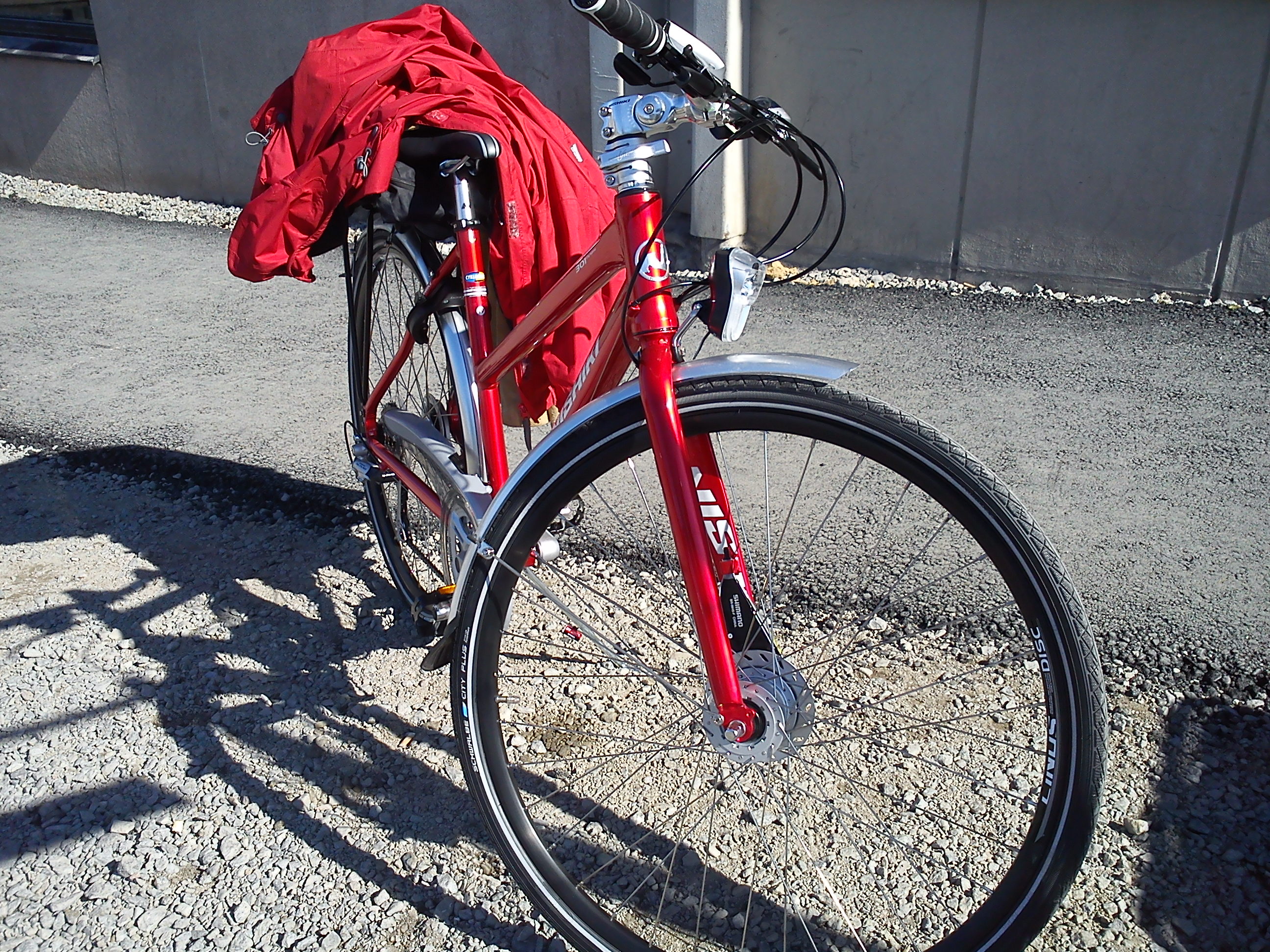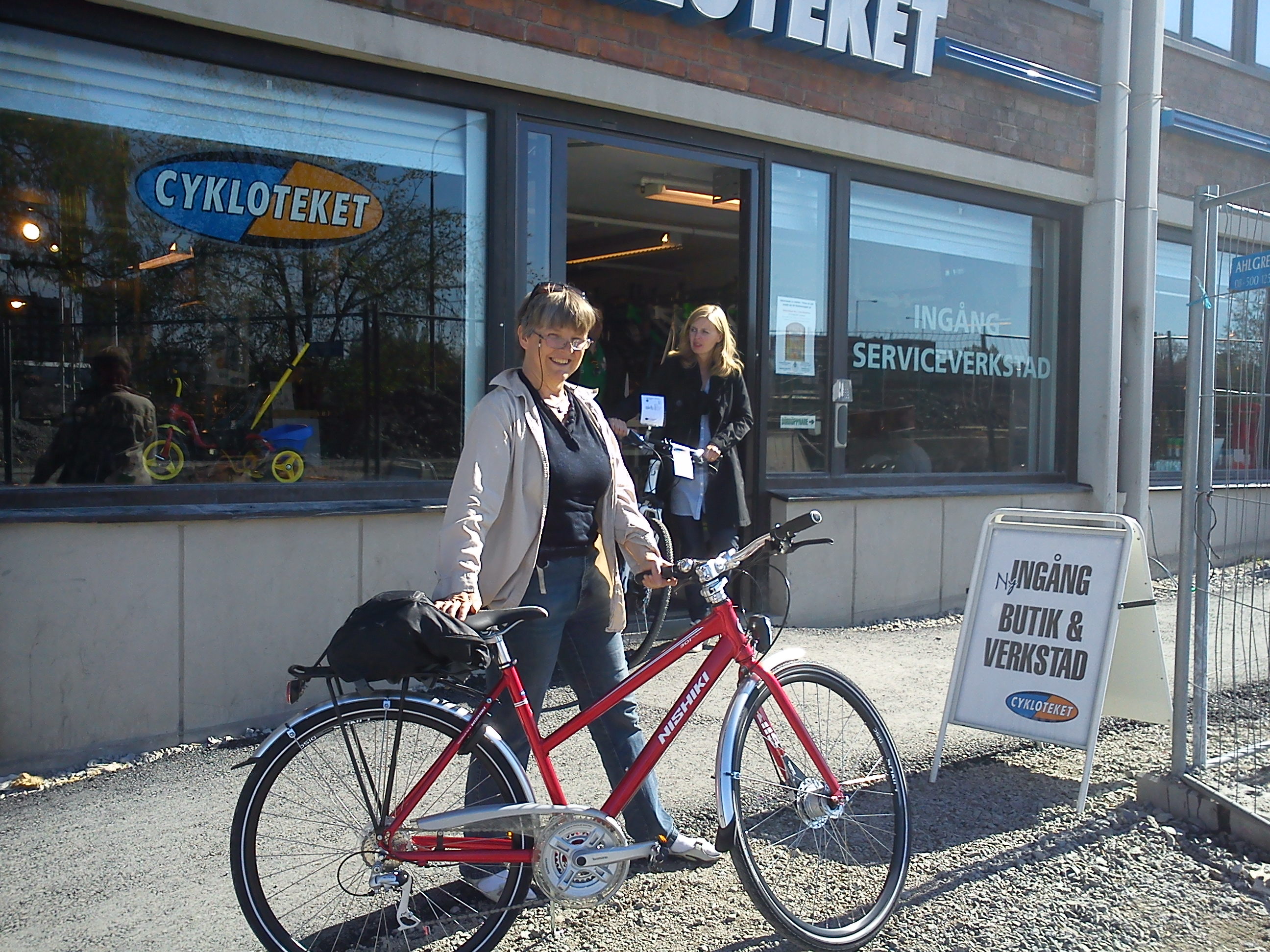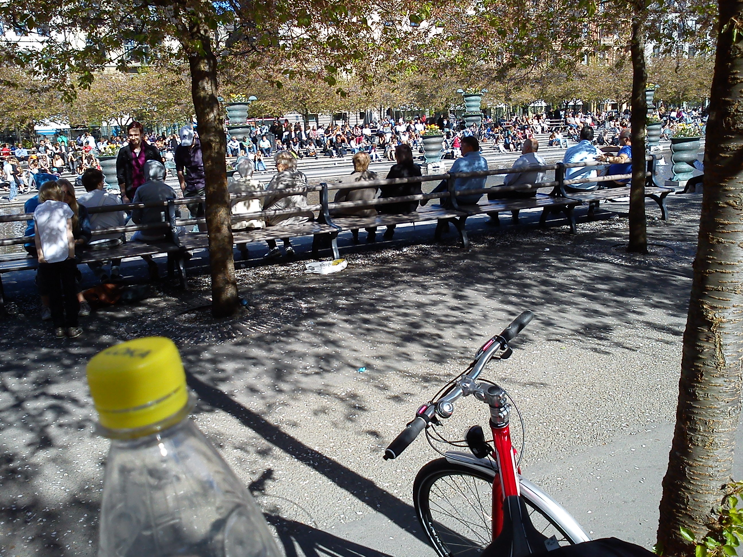 Å andra sidan fanns ju andra som fotograferade. Nu blev det ingen fransk Peugot, som de två senaste, men en röd Nishiki. Den rullade hem med mig, väl så bra. Och tänk att jag fick den där känslan av viktlöshet som jag hade då på 80-talet när det bara flöt på allting på de smala men alltid asfalterade franska vägarna, när jag nu rullade genom stan från Norrtull till Skanstull, genom city och med pust-paus i Kungsträdgården. Ett riktigt vattenhål av klass, trots att körsbärsblom inte längre stod i blom där.