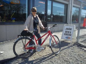 Gårdagens meckande ledde först till vissa framgångar för jag fick ordning på stänkskärmen som också hade gnidit mot bakhjulet då och då. Nu fick det bli ett slut på gnidandet. Jag for till Norrtull för att köpa en ny. Först gick jag in på ett ställe som skulle sälja ut alla cyklar, för mindre än halva priset, men där hittade jag inga cyklar som jag ville trivas med.