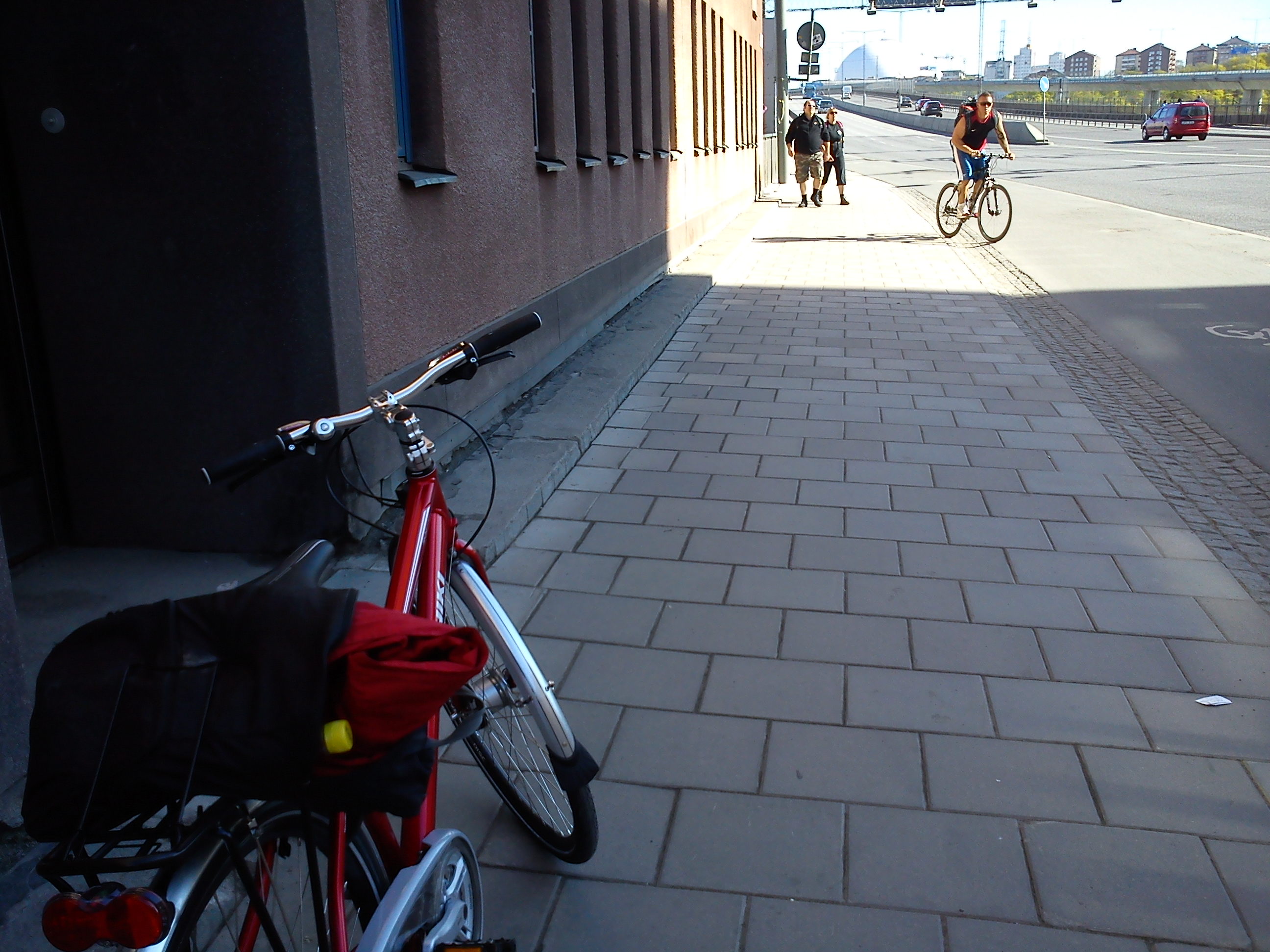 Men människor hängde som klasar överallt i sommarvärmen, och återigen kände jag igen känslan från Frankrike. Visst är det varmt, men när man cyklar svalkar det också av vinddraget. Och vägen hem över Skeppsbron gick i sån fart att jag glömde fotografera min ”Kung till Häst”, när jag passerade upp till Slussen. Hann få in lättaste växeln till Götgatsbacken, och sen…swisch…hemma i ett nafs, tack vare min nya ”Röda Faran”. =)