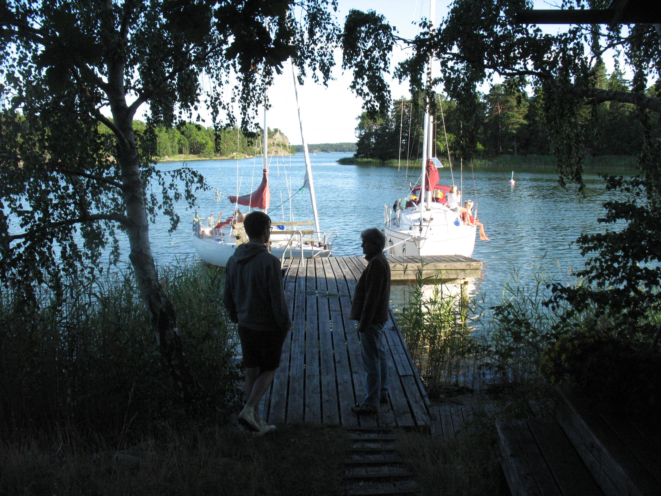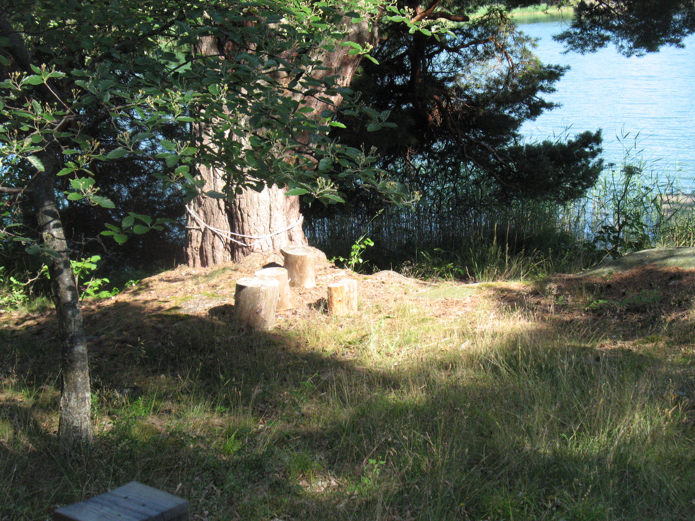 Den plats i närheten av huset där solen skiner mellan halv fem och halv sex innan den går in i ”ek”. Till tallens fot har stubbar rullats för tillfället och dagen till ära. De seglande gästerna kom förvisso i tid…pajen var klar….allt var dukat och upplagt för party….musiken från spotify hade börjat spela den brasilianska bossa nova som tillsammans med de milda vindarna skulle minna oss om andra platser, andra ljuva ögonblick. Men det var något som fattades….