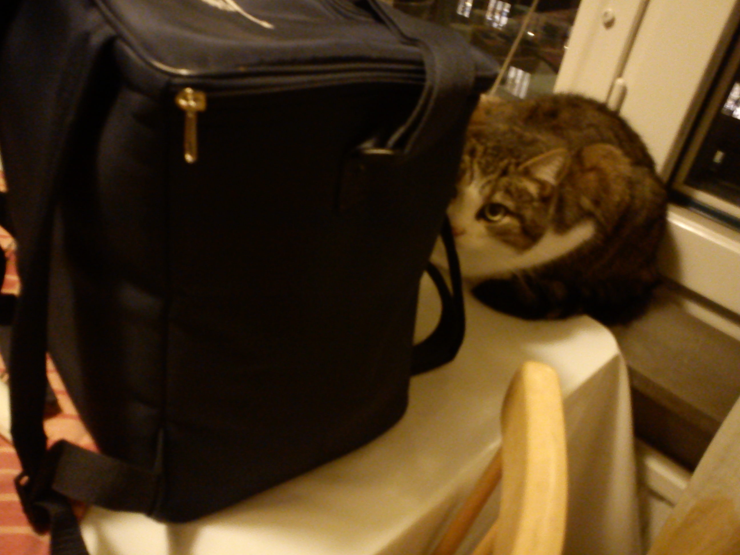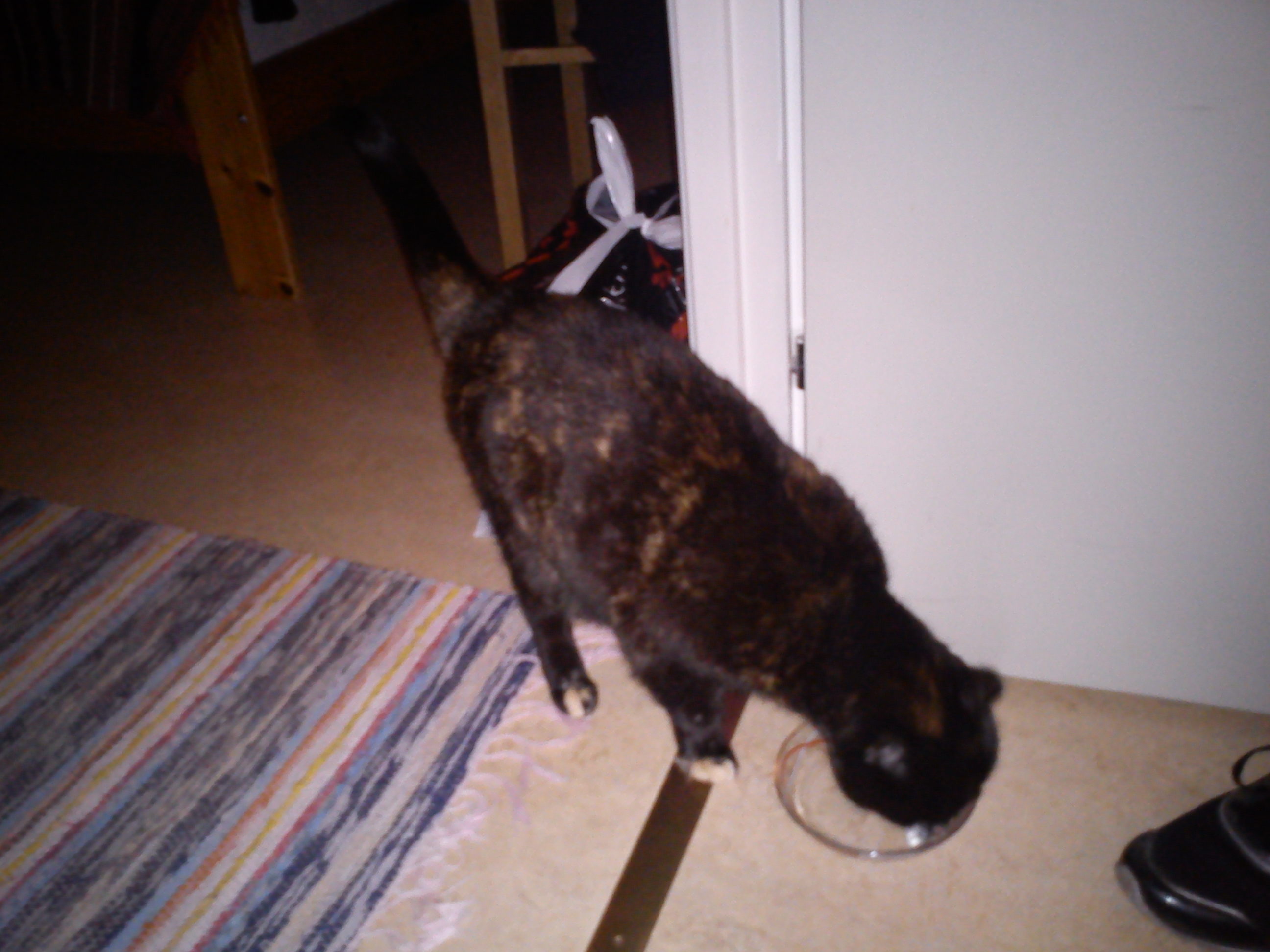 Med kameran kunde jag föreviga katternas liv och leverne. Det blev många, många bilder…..När jag nu i efterhand skulle samla lite bilder till kattjubiléumskalaset som vi kallade för Räkfrossan (Räkorna ligger i kylväskan ovan, som Hanna vaktar), som vi hade hemma igår för de förra ägarna och alla kattvakter de har haft genom åren, insåg jag att bilderna jag har och har haft på mina olika datorer har växt mig över huvudet. För även om kattbilderna var viktigast i början av mitt fotograferande fick jag så småningom andra intressen och annat fokus i mitt fotograferande, även om katterna hela tiden har följt mig och jag har följt dem i mitt sökande efter den ”perfekta bilden”. Men att hitta bilderna!?!? Under nästan alla dessa 8 år har jag fotat oupphörligen, och först sista året har jag trappat ner på farten såpass att jag till och med hinner vända bilderna rätt, ta bort de värsta suddiga, räta upp dem, ta bort de sämsta, osv, innan det har varit dags att lägga till nya lika suddiga, ointressanta, blandat med vissa faktiskt riktigt bra bilder. De flesta bilder ligger dock kvar i sina mappar efter när de var tagna, vilket trots allt nog är det bästa. Fortfarande har jag mer koll på ålder och tid när jag gjorde olika saker än platser och händelser. Men jösses! Nu har det ju gått 8 år sedan min fotografering exploderade och jag har fortfarande ingen bra modell för hur jag ska hitta mina kattbilder, t.ex. Hade det varit vanligt när jag började med det här fotoeländet, hade jag förstått att jag kunde ha ”taggat” bilderna med katt, landet, resor, etc…men att börja nu?