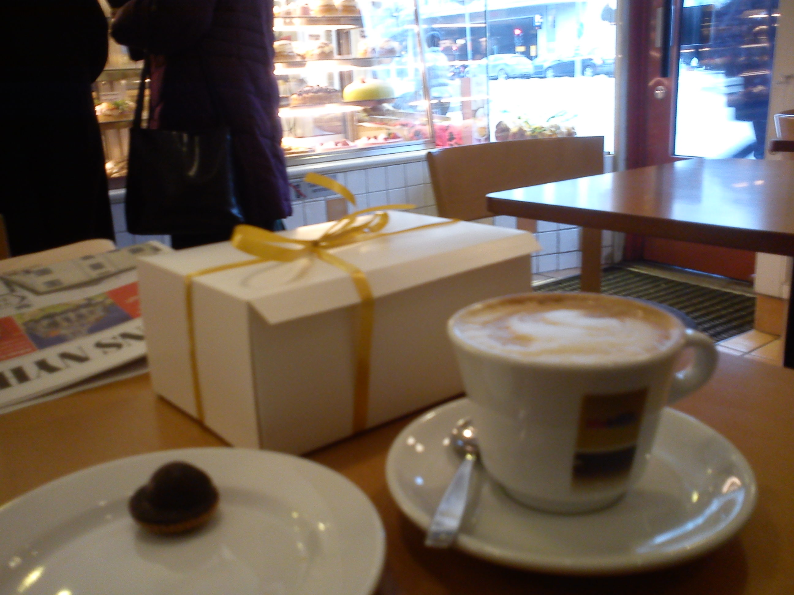 Men idag kostade jag i alla fall på mig en promenad i den iskalla vinden – tänk att jag passade på just idag när inte solen sken och det blåste extra iskallt – och sen en kvarts fika på närliggande kondis. Jag tog en minibiskvir och en cappuccino, och kände mig syndigt lyxig. Så är det med pretentionerna…tänk att en människa kan vara så anspråkslös. Nästan obegripligt. 😉