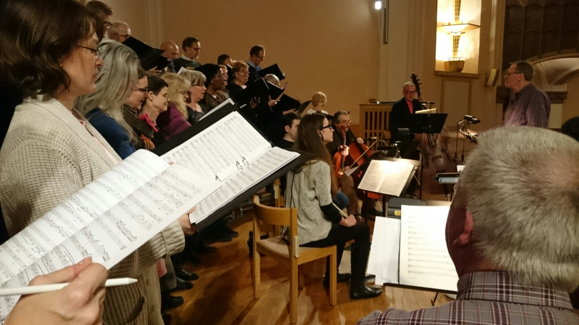 Till slut – efter ”a hard days work”- är det dags för veckans andra repetition. Upp till Vita Bergen för att öva Händel tillsammans med gästande ukrainska musiker, och även svenska och ryska, boende i Stockholm, inför påskdagens högmässa. Spännande möte!