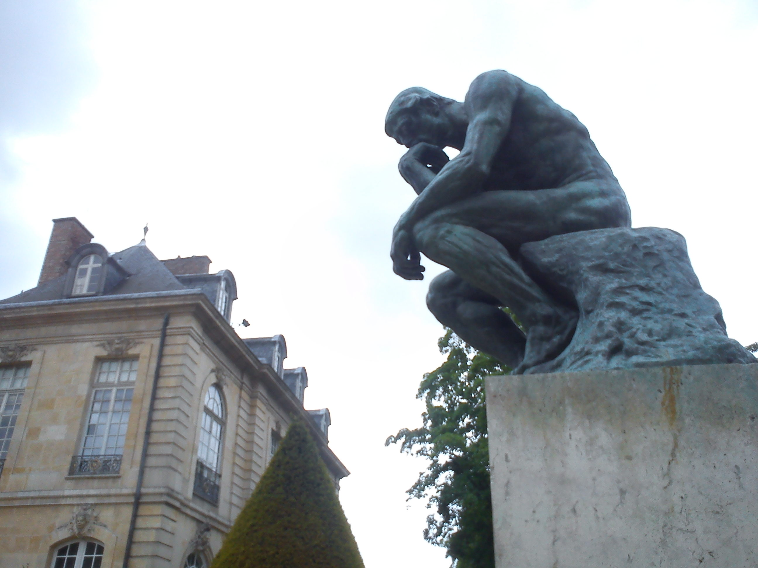 Just nu sitter jag inte ens, utan halvligger i mormors gamla gungstol från Värmlandsgården. Tack vare den kan jag ändra lutning lite när jag ska äta eller vila lite. Allting går. Och ja…Jag är tacksam att det inte var idag jag skulle flyga till Paris. Jag hade inte kunnat sitta på planet, eller på ett café, eller på en sten, som tänkaren på bilden. Tur att jag hann med den resan och alla andra roliga turer jag har gjort.