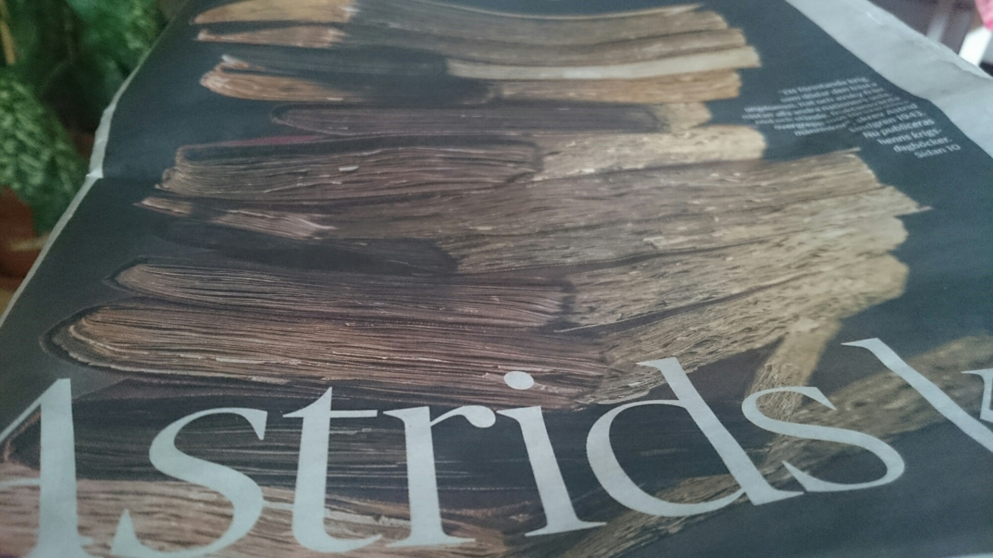 I dagens tidning fanns ett utdrag ur Astrid Lindgrens krigsdagbok. Hon visste inte då att hennes ord och tankar skulle gå till historien och att de skulle ges ut 70 år senare. Hon skrev inte för någon annan än sig själv. Hon verkade vilja ha koll på samtiden. Hon engagerade sig och tog del av olika människoöden och ville minnas viktiga händelser. Men det var inte tänkt att anteckningarna skulle ges ut.