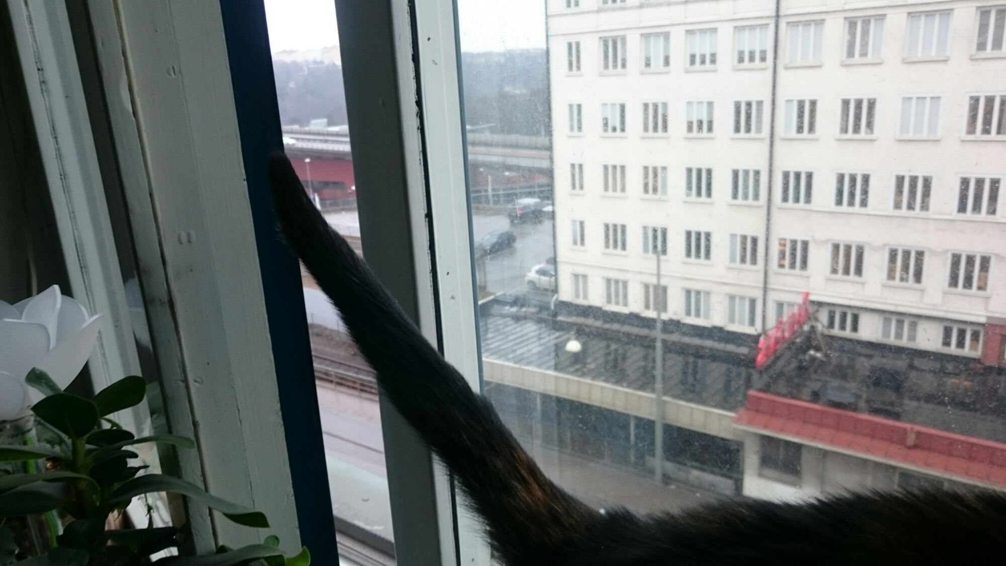 Jag tycker att alla borde få sitta inomhus med en katt i knät en dag som denna, och jag tycker att det enda vi svenskar med jobb, bostad och god hälsa, får klaga på ”i det här landet”, är det urgrå, usla, urkalla vädret en dag som denna.