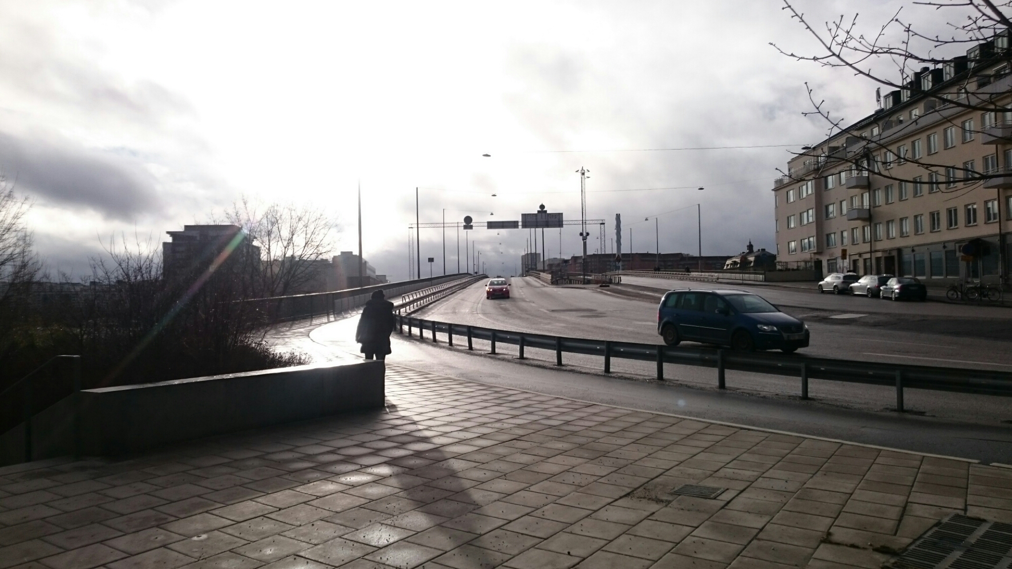 Vanligtvis brukar jag ju promenera hem på fredagar, vilket tar drygt en timme, käckt trallande på ”det är så hälsosamt och stärkande i fjällen”. Men idag avstannade trallandet redan vid Västerbro-fästet och buss 4 kom så lämpligt just då. Ibland hyllar jag kollektivtrafiken mer än annars.