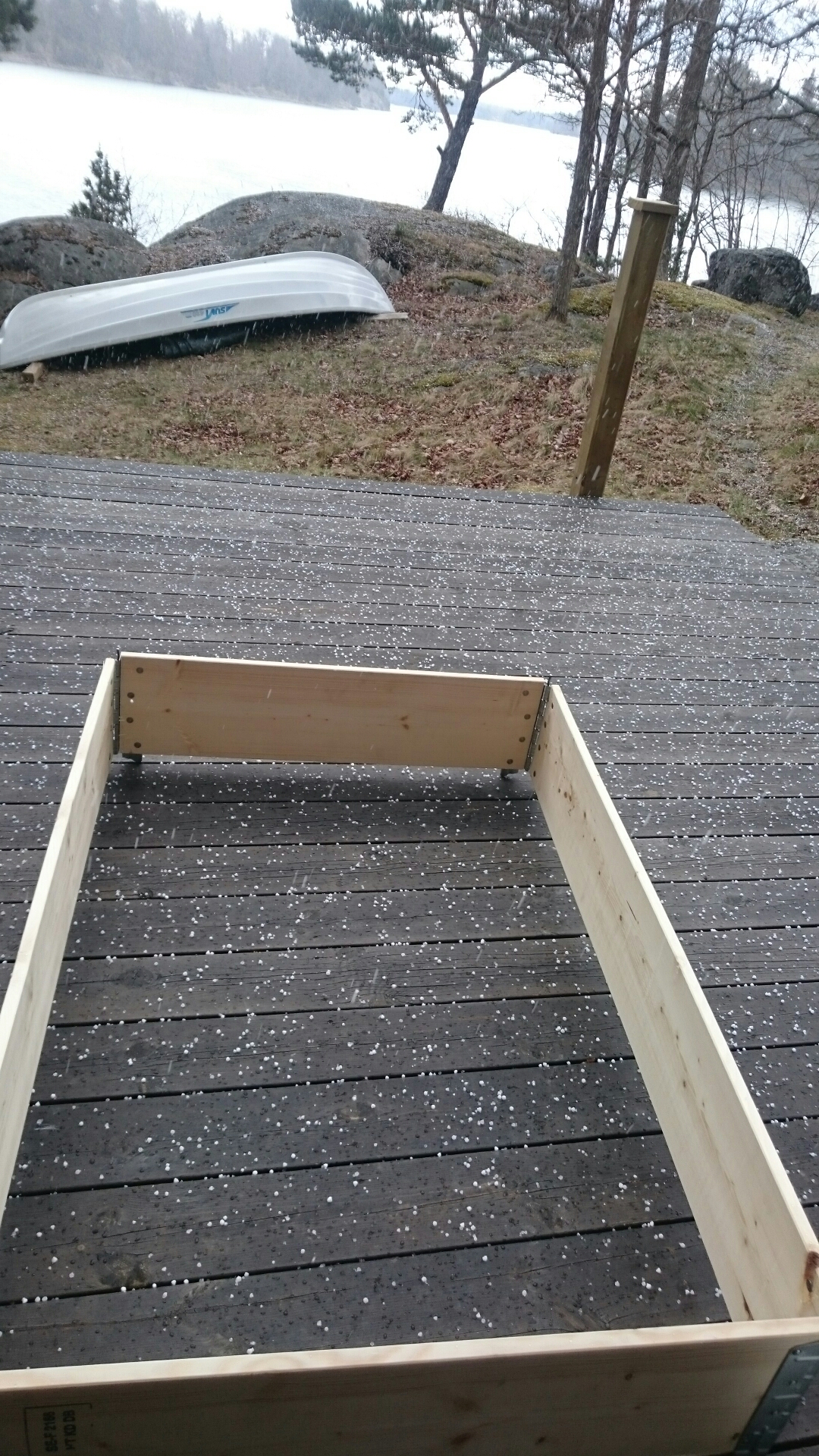 Sen var det dags att sätta ihop en pallkrage som vi ska lägga jord i och odla lite kryddor och annat i.