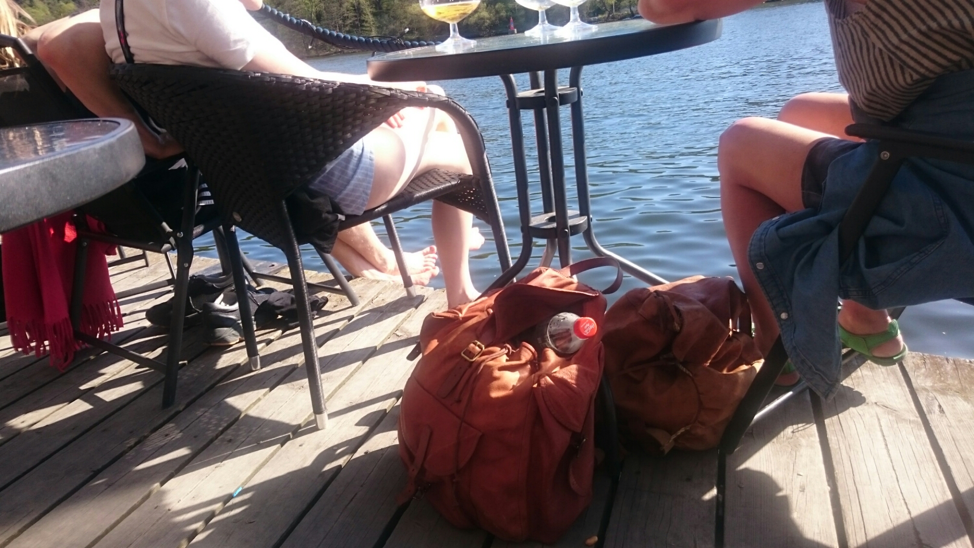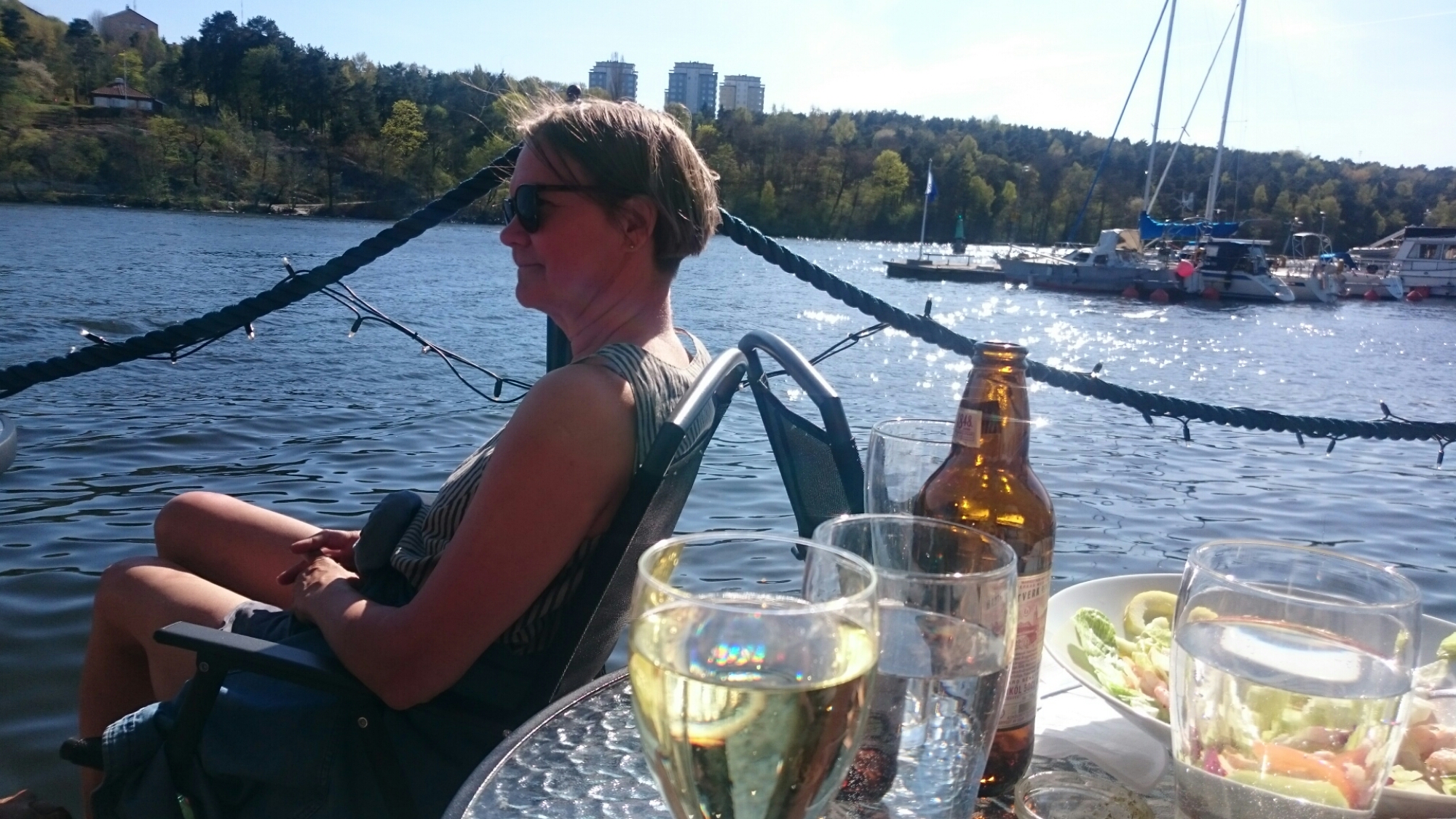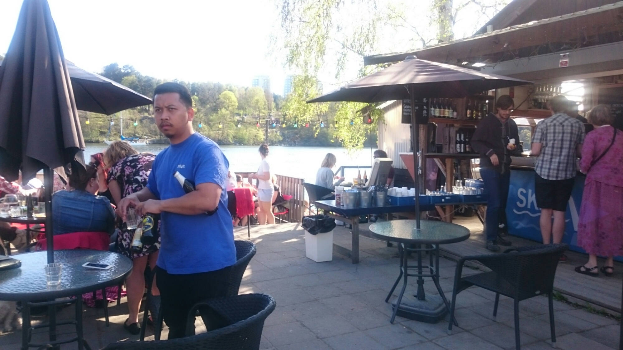 Ingen cykeltur, men en tur ner till båtfiket, och vi samlades där på den minimala bryggan med alla möjliga människor.