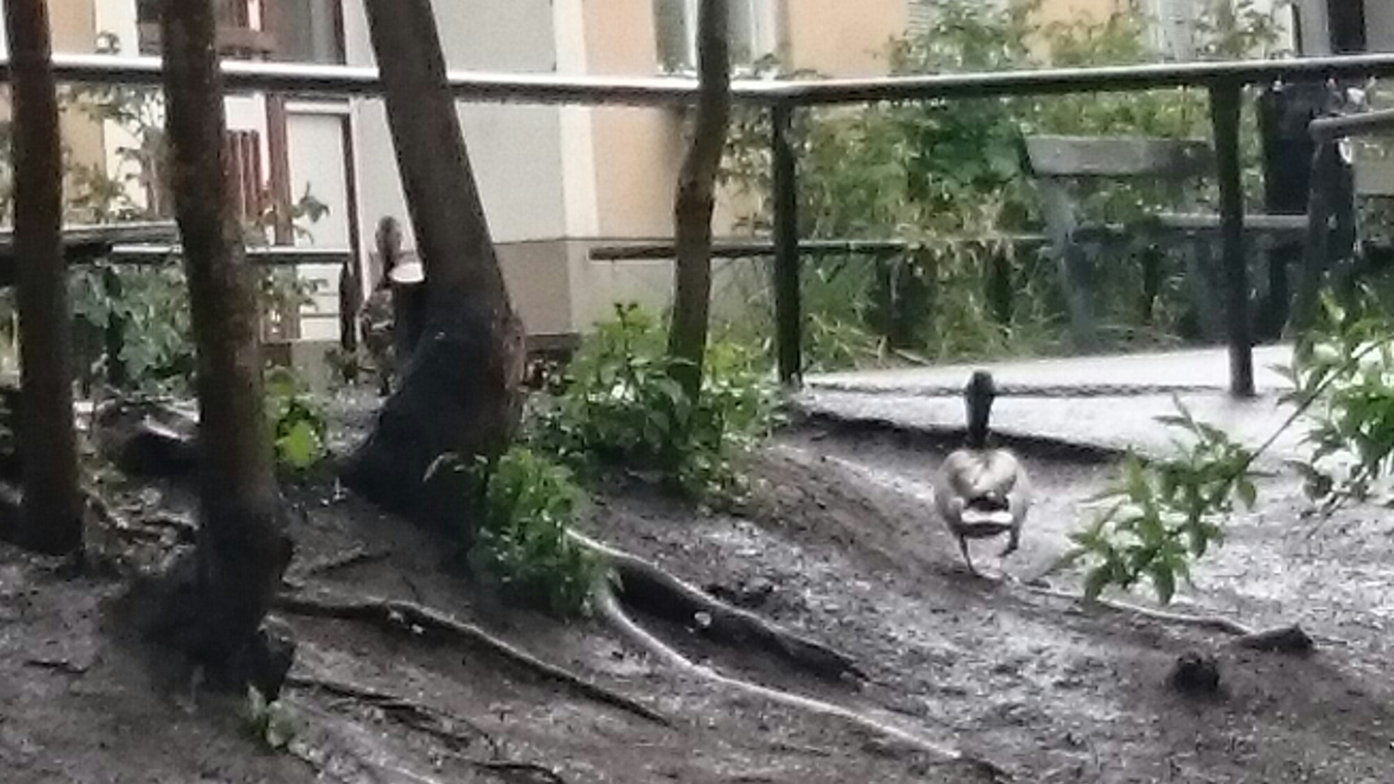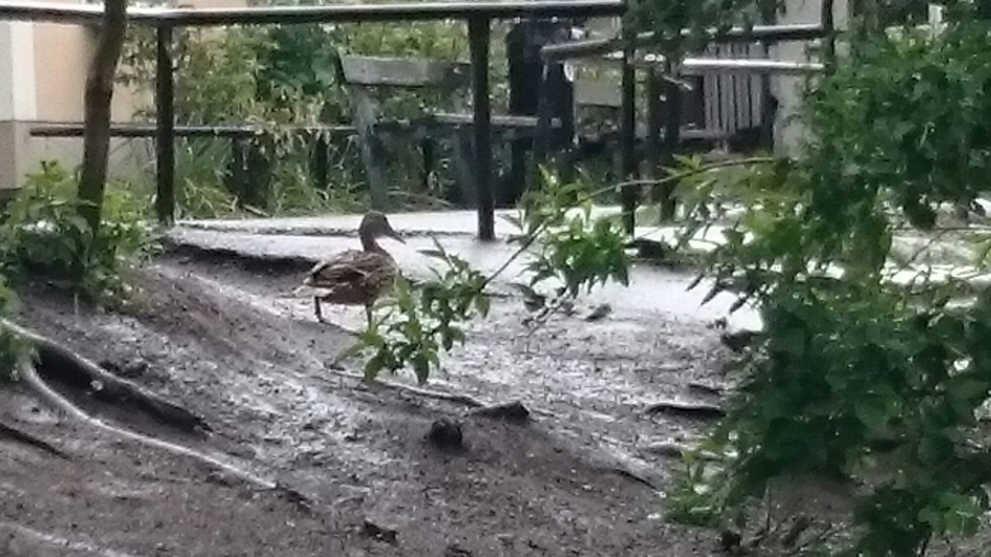 De kränkta änderna försökte först komma undan bland buskarna, men gav upp när de blev jagade av nyfikna barn.