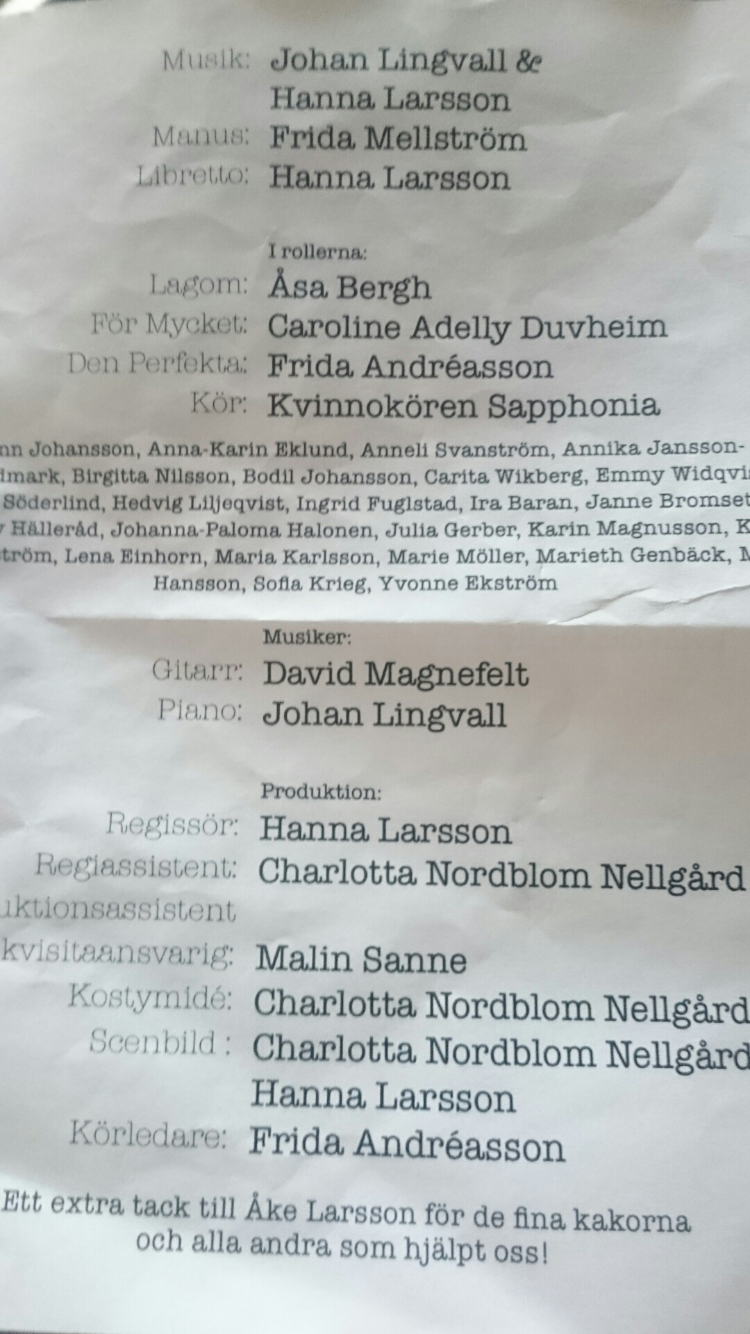 Sedan kom en mellanlandning hemma med plats för ett lätt tungsinne. Men jag lyckades bena ut det innan vi i kvällningen gick på den nyskrivna musikalen ”Vackra ni”, där kvinnokören Sapphonia deltog.