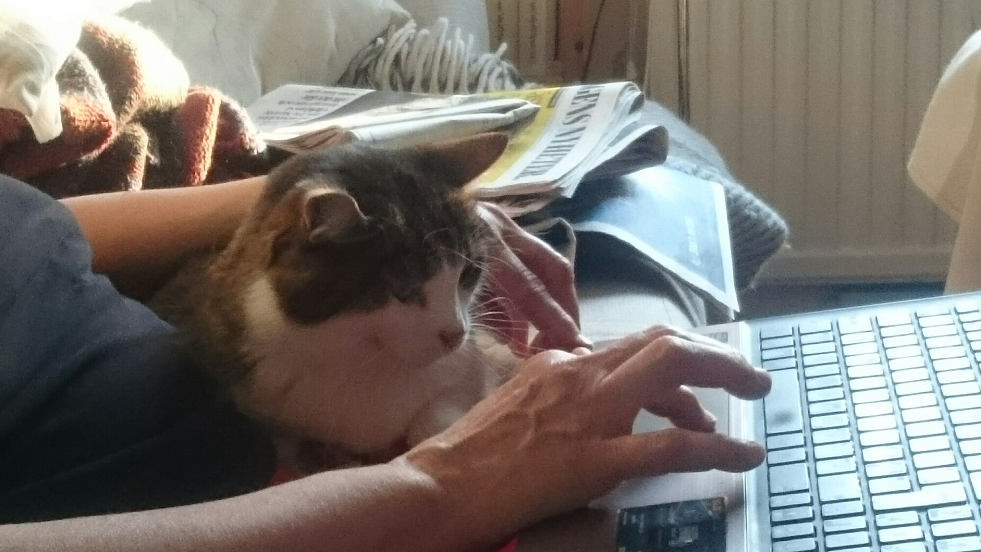 Förresten går det inte att resa sig och knäppa på TVn med en katt i varje knä.
