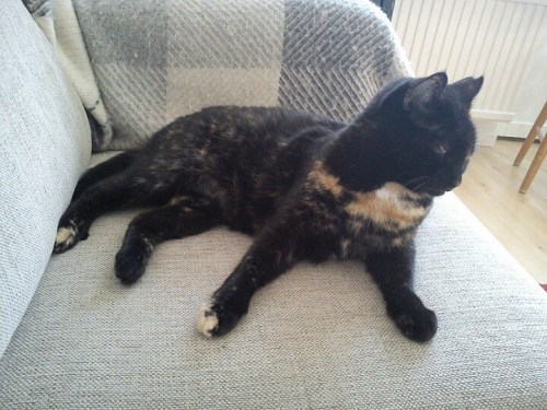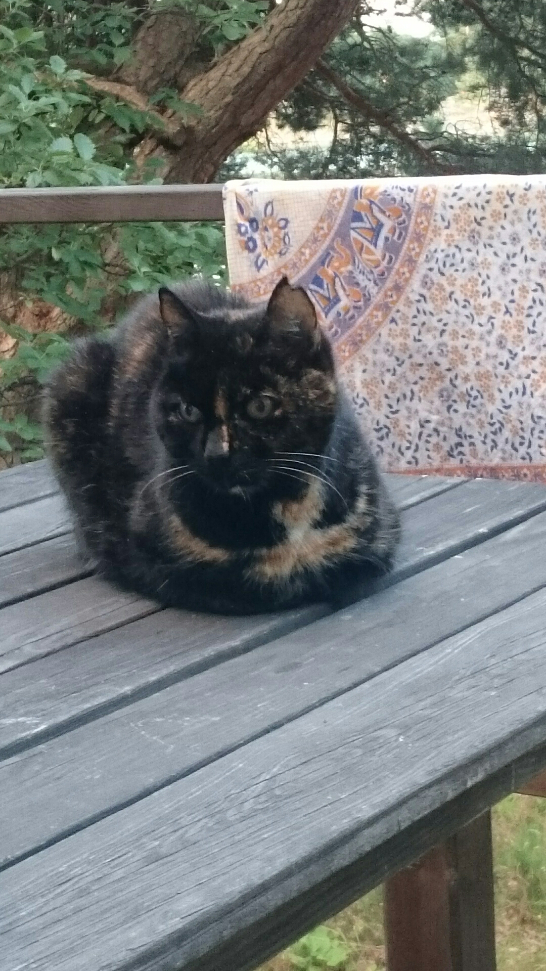 Sådan var hon, vår katt. Drog sig tillbaka ibland. Hon gick in till sig, brukade vi säga när hon var inne i nåt av smårummen. Men ibland hann man knappt tänka, ”var är min lilla katt?”, förrän hon hade hoppat upp i knät och ville ha lite klapp och klang. Hon var skygg inför främlingar och hoppade upp på garderoben när vi fick besök. På landet kunde hon vara borta flera dygn om det knep.