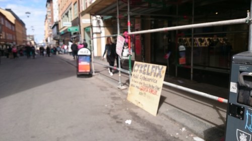 Så var det också idag. Vi var inbjudna av en kompis – en konstnär – som hade utställning tillsammans med en fotograf som ställde ut bilder frän Slussen ”under förvandling”. En fin vernissage där de olika bilderna gifte sig med varann. Det var flyglar som flög som målats ur fågelperspektiv och häftiga porträtt av Nina Simone bland annat, som mötte de mer dokumentära svartvita bilderna från Slussens omvandling. Själva objekten – ett Slussen i förfall – är inte alltid snygga, men fotografierna är det absolut!