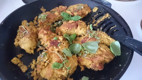 Plötsligt är det roligt med det oförutsägbara. Finns inte tillräckligt med kikärter får jag fylla på med sojabönor. Lite alternativa kryddor som inte fanns i kikärtsbiffreceptet, som jag hittade på nätet.
