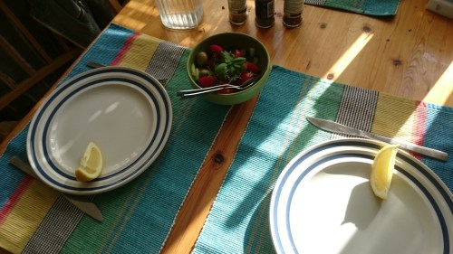 Som vi har väntat på värmen. Ända fram till igår har jag hasat omkring i vinterjacka och halsduk och muddar.
