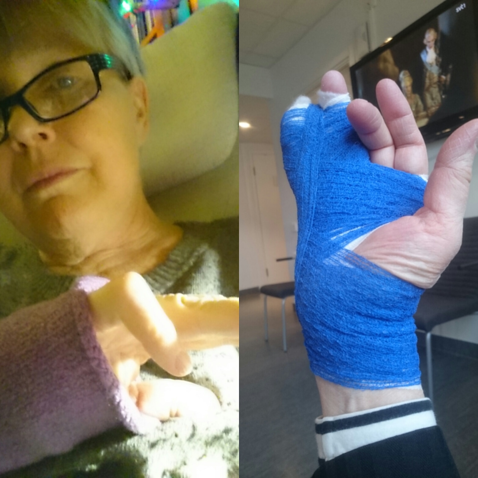 Ett litet steg för mänskligheten, men ett stort för mig idag, när mitt krokiga lillfinger opererades rakt igen! Jag är faktiskt lite stolt över mig själv att jag gjorde slag i saken och vågade. Om man jämför med andras mod och motgångar är det naturligtvis inte någon större bedrift. Men som sagt – ur min snäva synvinkel var det ett stort steg för mitt lilla finger. 😉 När jag för sex år sedan fick överta mitt föräldrahems flygel, var jag mycket glad. Inte för att jag någonsin har varit, eller kommer att bli någon riktig pianist, men jag har alltid älskat att spela på det instrumentet, och jag hade nog lite i åtanke att när jag så småningom blir pensionär kan jag få tid att öva så att jag åtminstone blir lite bättre. Men så kom den där förargliga stukningen av lillfingret emellan för fyra år sedan, som gjorde att fingret långsamt kroknade efterhand, och där sjönk mina pianospelsambitioner i all hast. Feghet och i viss mån brist på tid har hindrat mig från att försöka åtgärda problemet, men till slut var jag bara tvungen att bejaka mitt dolda pianist -jag.