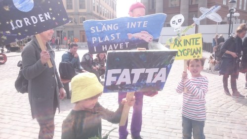 Men tillbaka igen på Mynttorget får jag ny energi. Det måste finnas en framtid helt enkelt! Vi måste hjälpas åt och hämta kunskap hos varann. Vi måste ta oss den tiden. Och till att börja med måste vi tala om för politikerna att de måste samarbeta och inte motarbeta varann för att vi ska lyckas. Det duger inte att partier som egentligen tycker lika om åtgärder för att rädda klimatet börjar bjäbba mot varann, som i gårdagens riksdagsdebatt om klimatet.