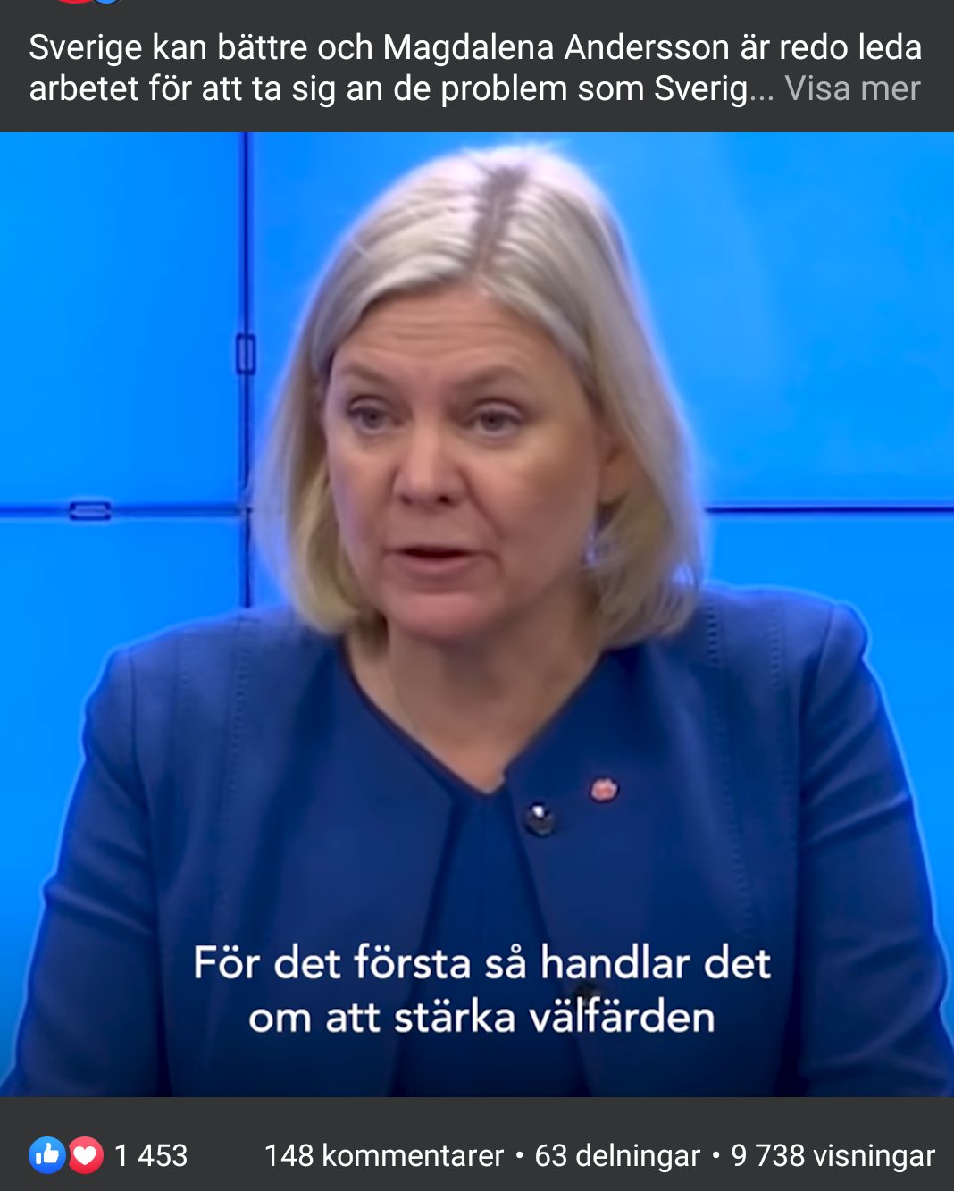 Samtidigt ångar S på i invanda hjulspår, för välfärdens skull. Fler jobb, mer konsumtion, fler eldrivna fordon, mer ”grön” industri. Allt för välfärdens skull. Det är förståeligt att det är prio ett för ett socialdemokratiskt parti. Men det känns inte som om de ser effekterna och konsekvenserna av detta tillväxt-samhälle. Vad för slags välfärd leder det till, när vi samtidigt måste betala skyhöga summor för att skydda oss från effekterna av den globala uppvärmningen – pandemier, översvämningar, bränder, torka, arters utrotning och allt ”elände” som medföljer? Till vilket pris vill vi i de rikaste länderna ha fortsatt välfärd på hög nivå? Och vad är välfärd?