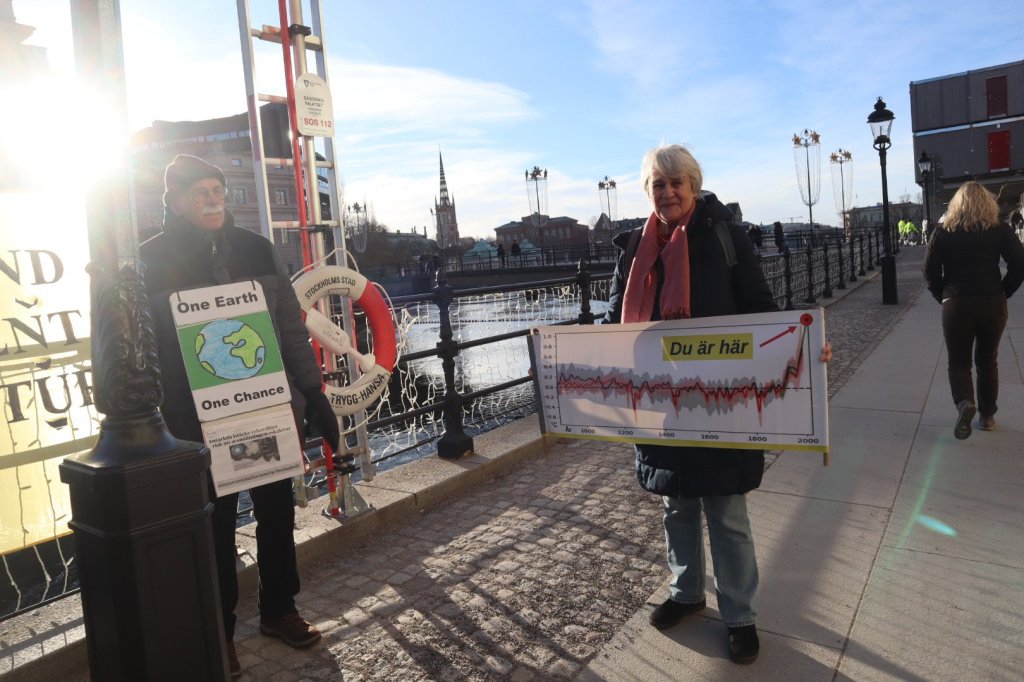 Men som av en händelse gick det förbi en journalist och en fotograf från SvD idag, som tog ett foto av oss, och som vi också hejdade och pratade med om just brist på klimatbevakning från medias håll. De var mycket trevliga och inlyssnande.