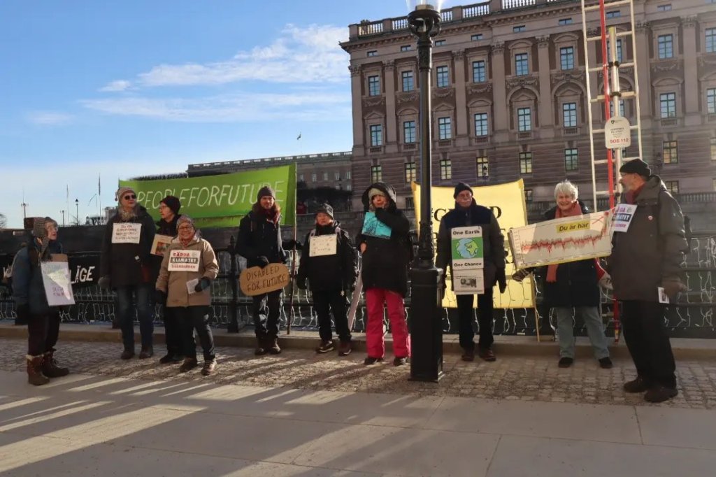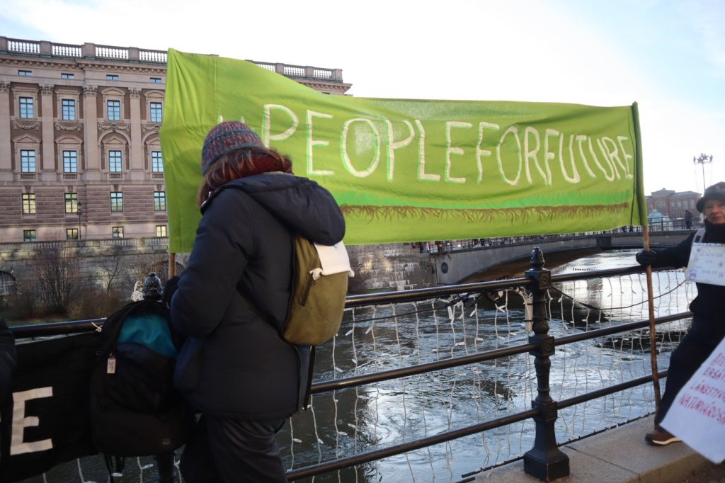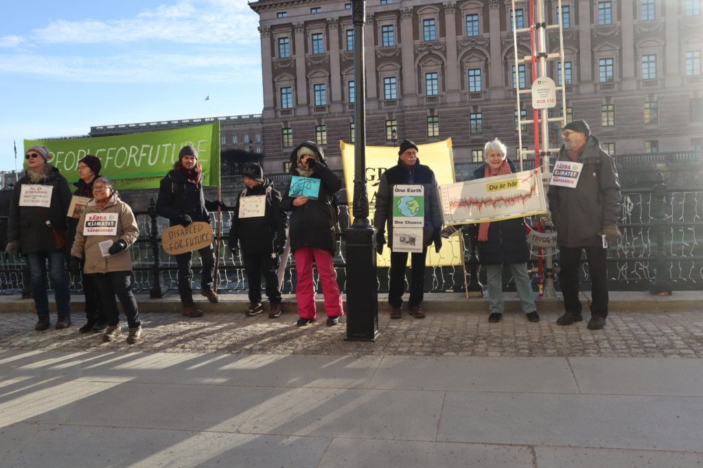 ”Rapport från en….”….nej, inte en skurhink, men från en synnerligen uthållig skara människor som varje fredag ses utanför Sagerska, sedan 2019, och förresten ännu tidigare – sedan 2018, då vi deltog i Fridays For Futures skolstrejk på Mynttorget.