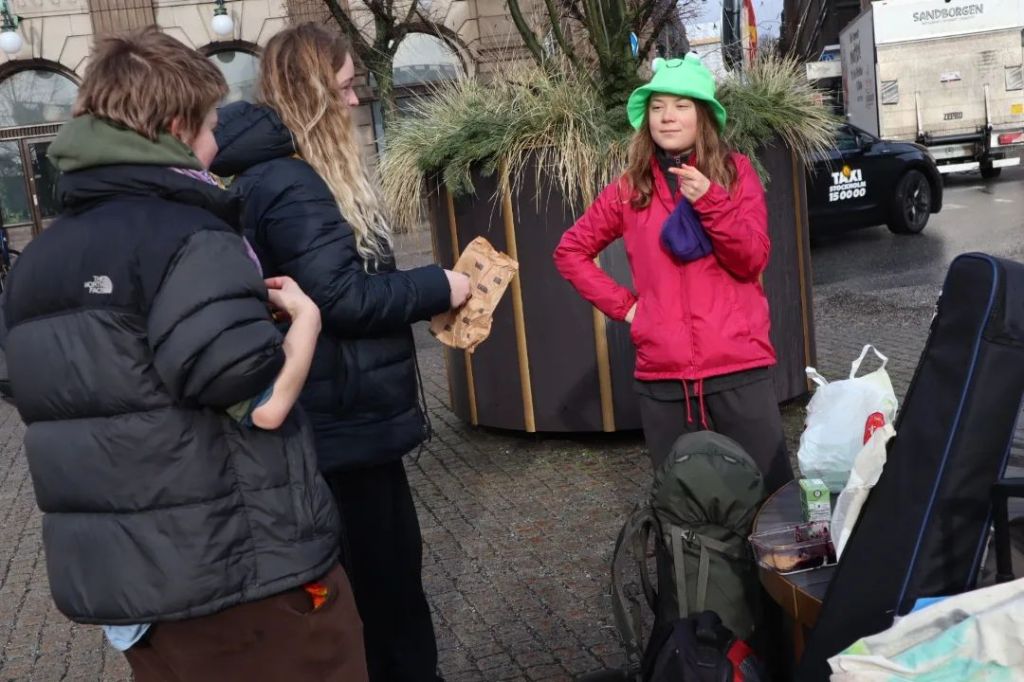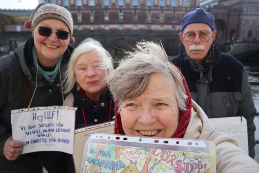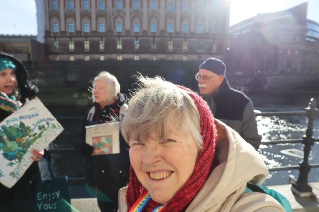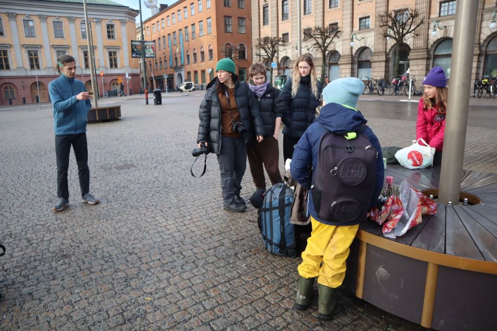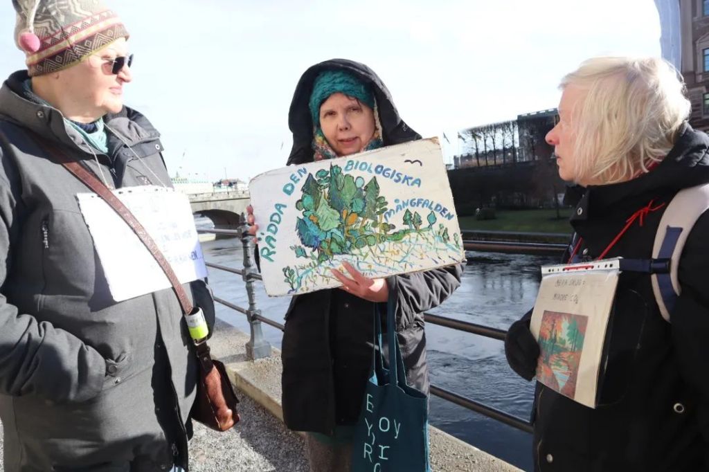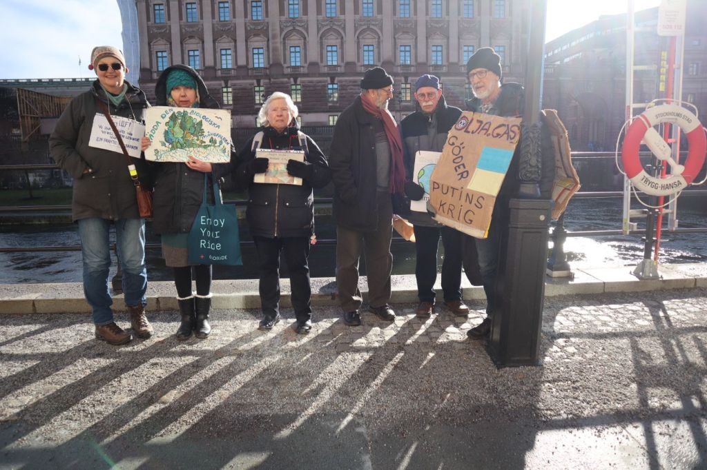 På Mynttorget pratade vi med några trevliga killar från Lidingö, som frågade om vi brukade limma fast oss på motorvägar. Det sa vi att vi inte gör, men att klimatrörelsen är bred och metoderna är många, och även om inte vi har valt att ”limma fast oss”, har just de aktionerna fått ett väldigt genomslag medialt, på det sättet att nästan alla människor numera känner till begreppet ”att återskapa våtmarker”. De kunde se vitsen med det, och trots att metoden på kort sikt kan kännas kontraproduktiv, kan den på lång sikt ”bära frukt”.