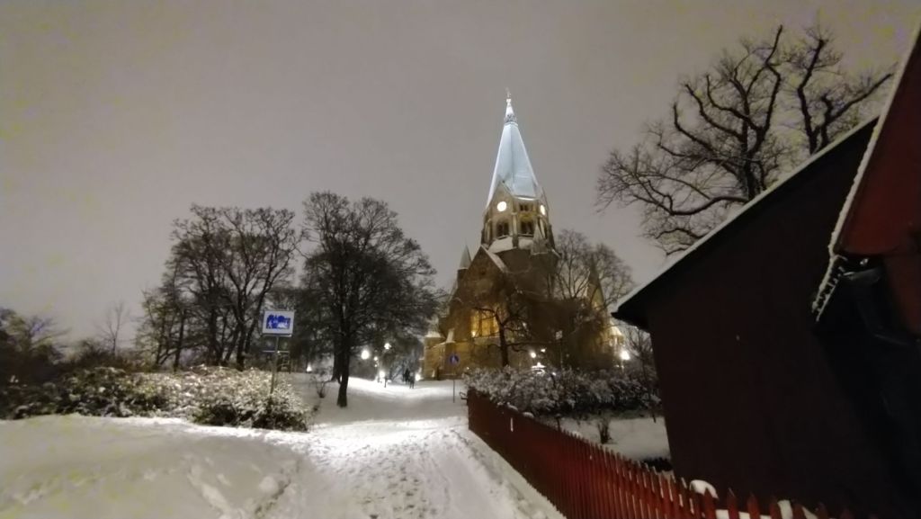 Varje tisdag, en bild på kyrkan uppe i Vitabergsparken. I kväll blev det en kyrka i snö. Den kan man kanske spara till nästa julkonsert…😏