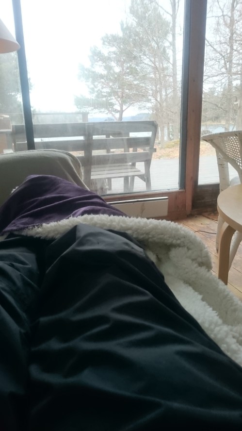 Långfredagen ska vara en lång och grå dag, och i år lever den verkligen upp till sitt rykte. I alla fall vädermässigt, även om solstrålar tittade in på altan i arla morgonstund. Men sen blev allt kallt och snålt och blåsigt. Men vad gör väl det när man kan ligga på sofflocket och sova sin eftermiddagslur och sen se ut över fjärden när man har slagit upp sina ljusblå. Tänk att vara liksom ett med naturen utan att röra en fena. Det är att njuta.