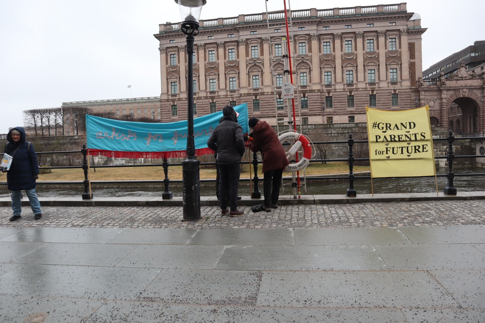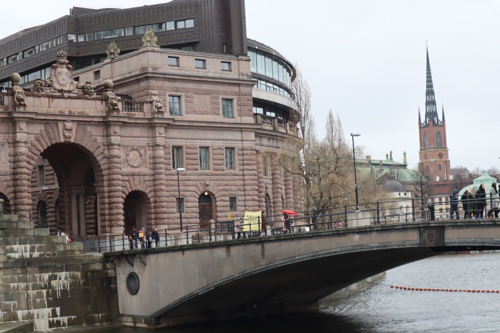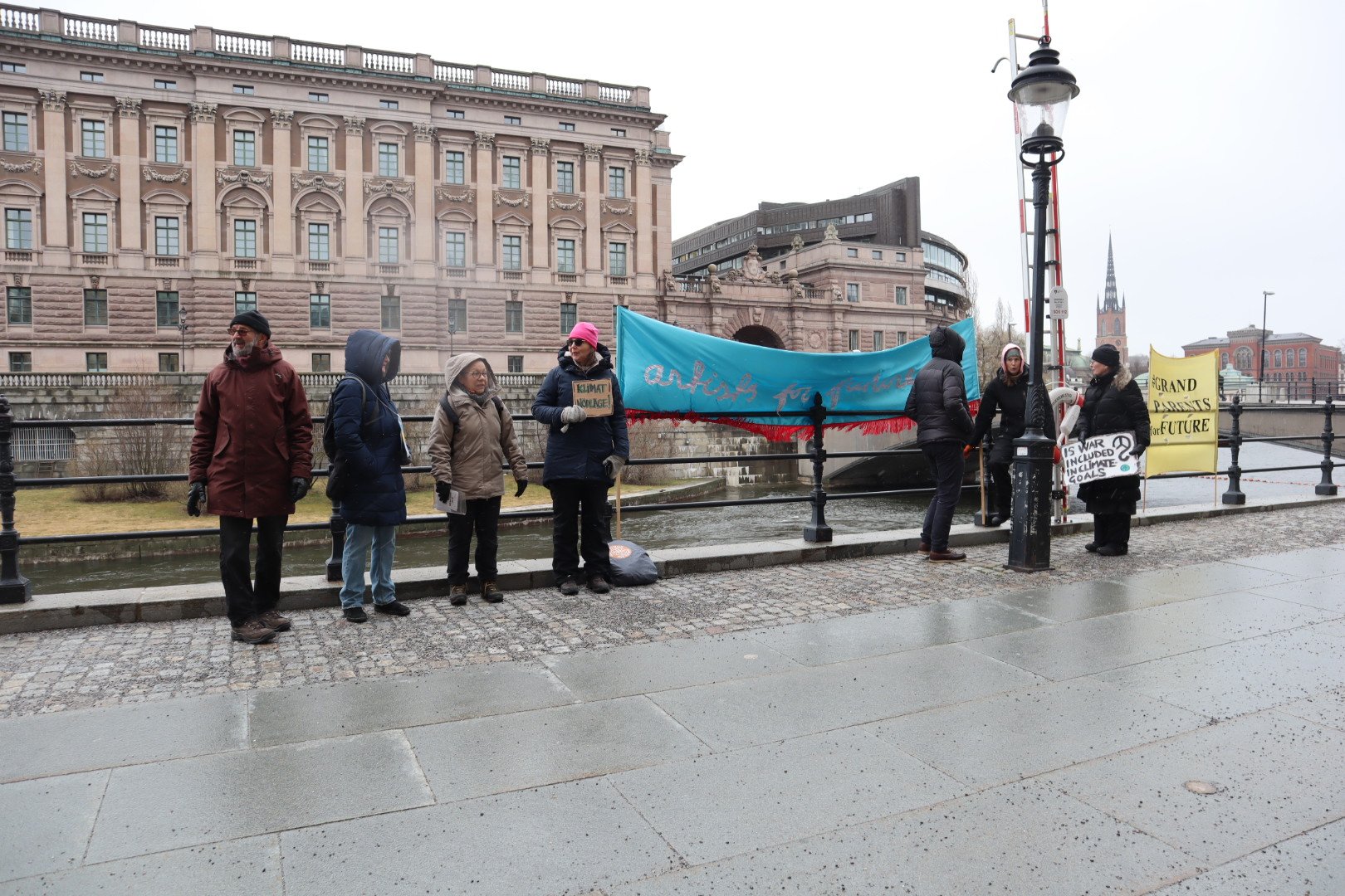Oscarsteaterns framträdande vid ”Öppna salongers” aktion vid Norrbro i Stockholm.