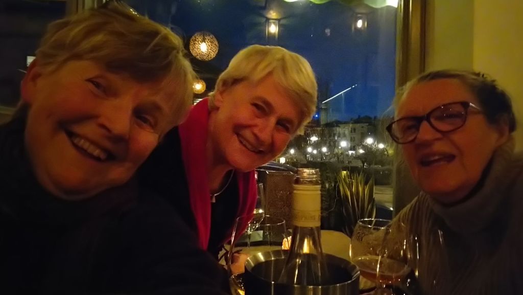 Vi hade dessutom turen att bli bjudna på en flaska vin – för att vi kunde tänka oss att byta bord – av dem som sedan fick vårt bord. Verkligen oväntat och gentilt! Men något sådant råkade vi nog däremot inte ut för på ”den gamla goda tiden” vad jag kan påminna mig … 😏