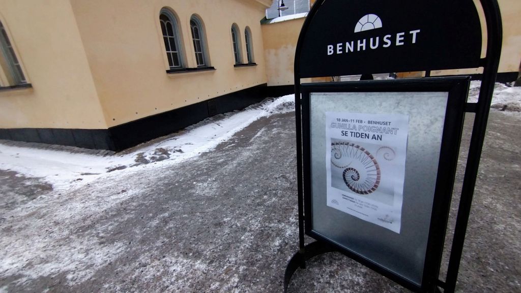 Och konsten passar också synnerligen väl in i ett hus som heter Benhuset. I detta hus förvarade man förr i världen bland annat gamla ben, och också kistor med människor som var ofrälse, som inte kunde begravas på kyrkogården. Huset står kvar, ganska orört, enligt Gunilla, vilket ju också bidrar till stämningen.