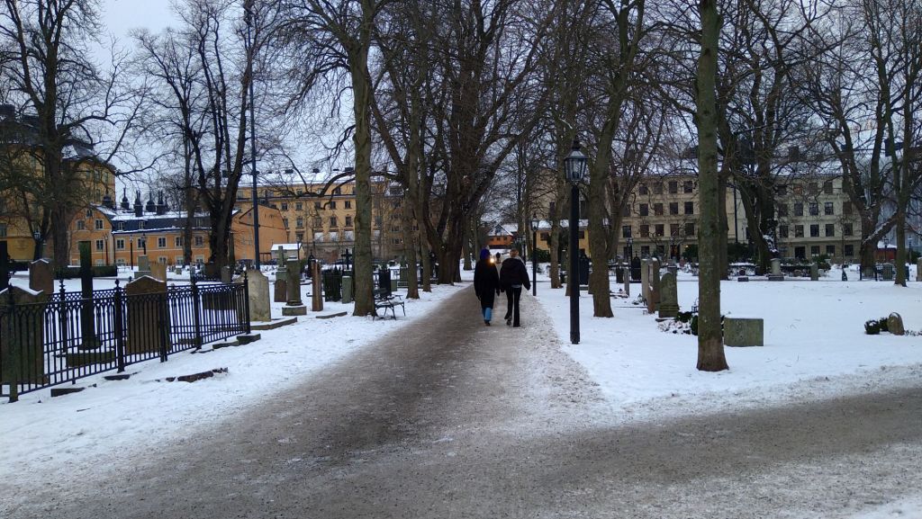 På promenaden hem passerade vi flera kända personers gravplatser. Personer som Anna Lindh, Cornelis Vreeswijk, Sven-David Sandström, Stefan Nilsson och Gösta Ekman.