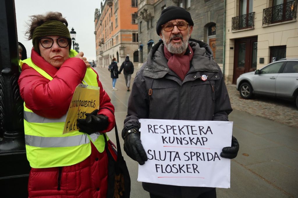 Och så var det vi ”vanliga trofasta” på torget, och vid Sagerska, med #peopleforfuture, utanför statsministerns bostad. Där passerade också en holländare som hade varit på skidtur i Abisko och ytterligare en engelsktalande man (vars nationalitet jag inte uppfattade).