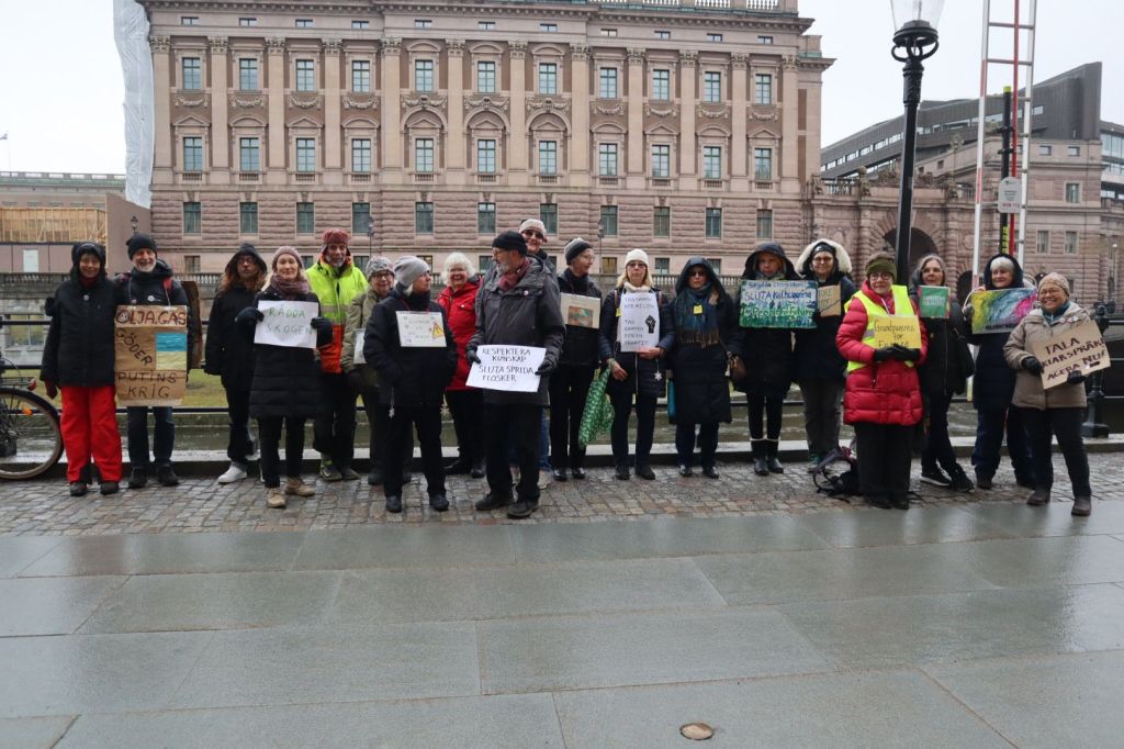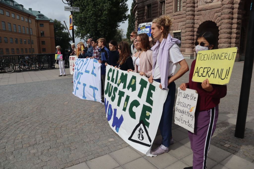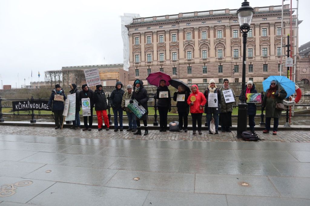 Idag var vi flera olika organisationer som demonstrerade, manifesterade, mediterade och sjöng för klimatet, på olika platser runt Riksdagshuset.