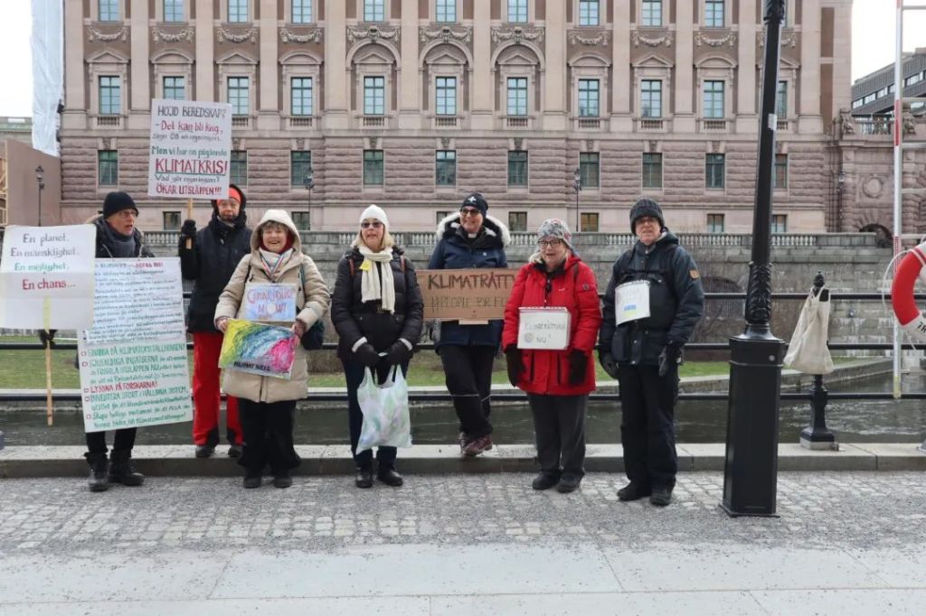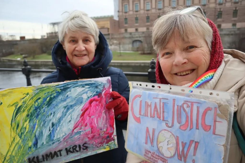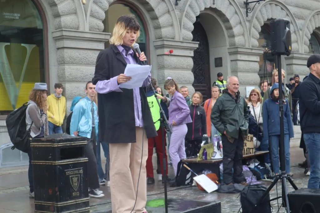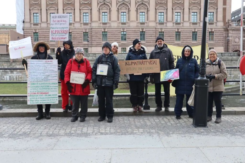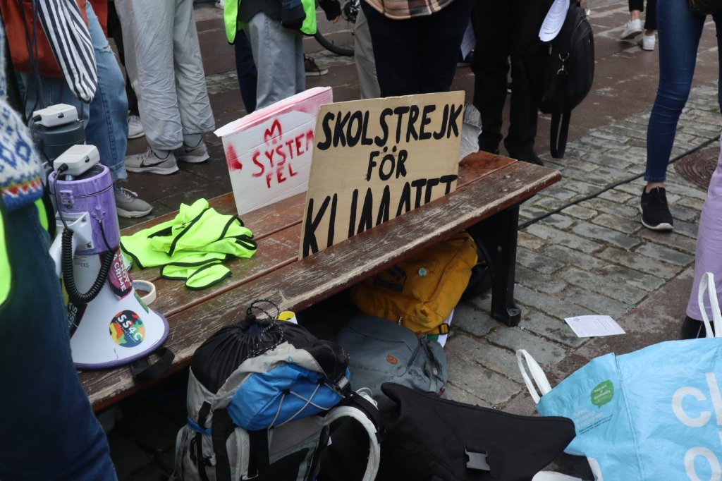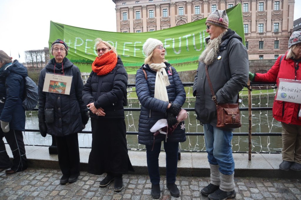 På Mynttorget pratade vi med några trevliga killar från Lidingö, som frågade om vi brukade limma fast oss på motorvägar. Det sa vi att vi inte gör, men att klimatrörelsen är bred och metoderna är många, och även om inte vi har valt att ”limma fast oss”, har just de aktionerna fått ett väldigt genomslag medialt, på det sättet att nästan alla människor numera känner till begreppet ”att återskapa våtmarker”. De kunde se vitsen med det, och trots att metoden på kort sikt kan kännas kontraproduktiv, kan den på lång sikt ”bära frukt”.