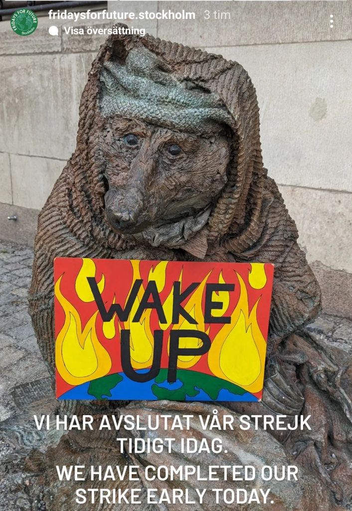 Äntligen på plats, tillsammans med #FridaysForFuture på Mynttorget och med #peopleforfuture utanför statsministerns bostad vid Sagerska. Varje fredag från 9.00 på Mynttorget och från 11-12 vid Sagerska.