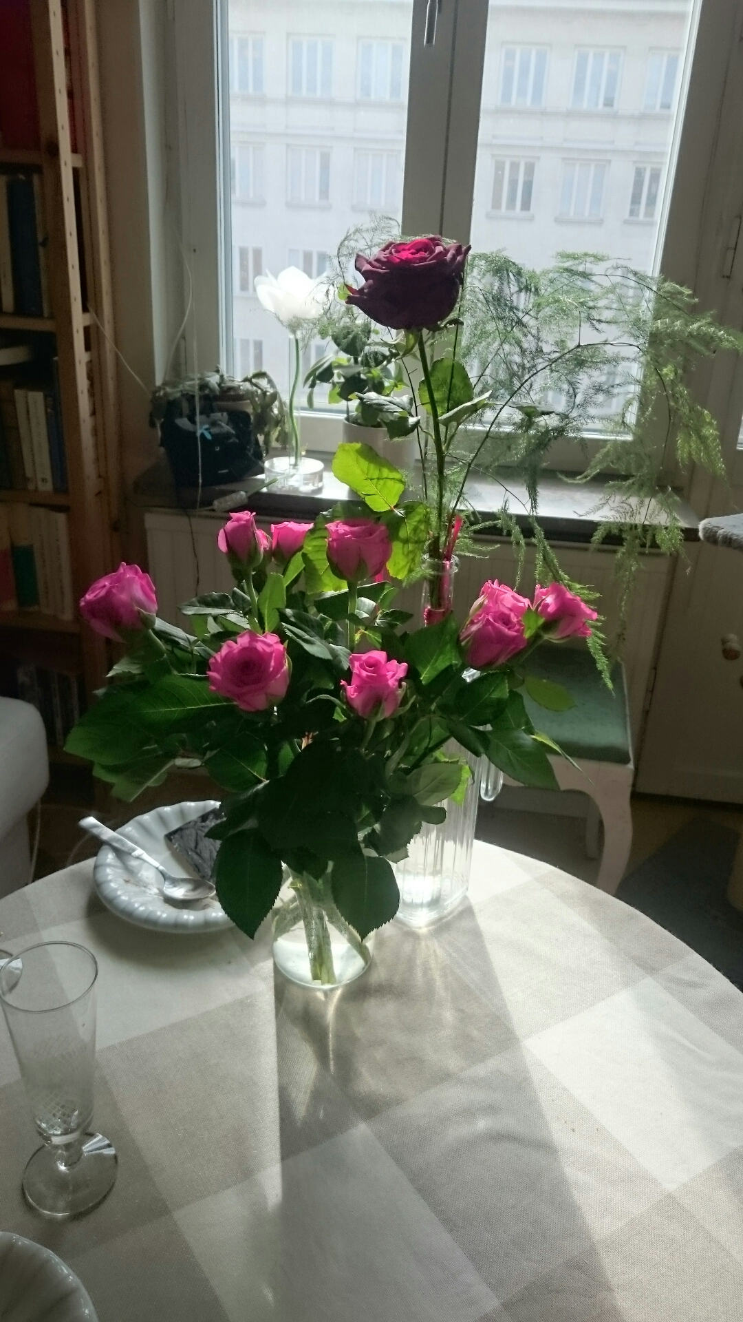 Fast först en liten eftermiddagsfestlighet med blommor och Nobelbakelse. Och lite champagne är ju alltid gott, som en fd svärmor till vår släkting alltid sa.