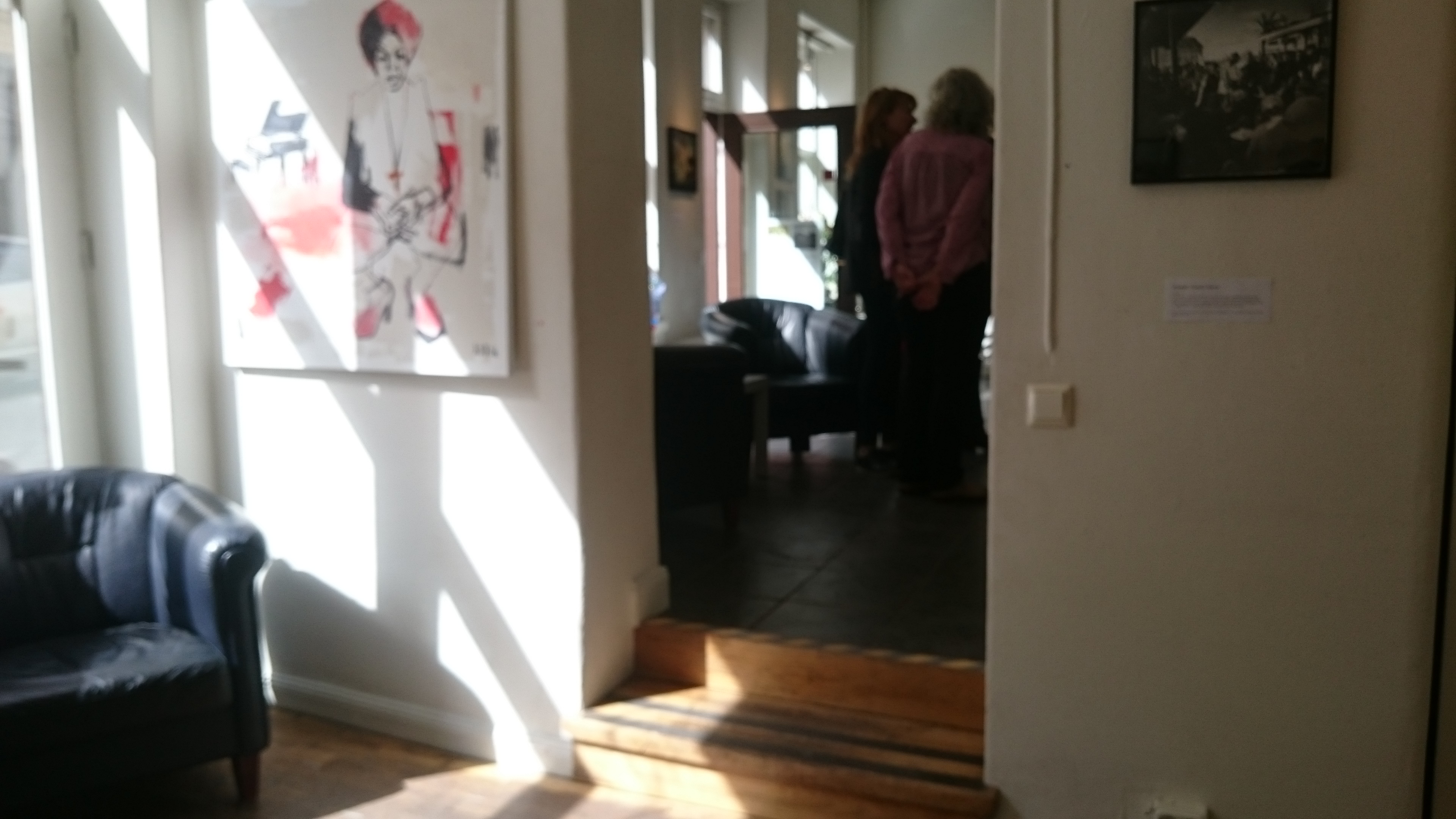 Så var det också idag. Vi var inbjudna av en kompis – en konstnär – som hade utställning tillsammans med en fotograf som ställde ut bilder frän Slussen ”under förvandling”. En fin vernissage där de olika bilderna gifte sig med varann. Det var flyglar som flög som målats ur fågelperspektiv och häftiga porträtt av Nina Simone bland annat, som mötte de mer dokumentära svartvita bilderna från Slussens omvandling. Själva objekten – ett Slussen i förfall – är inte alltid snygga, men fotografierna är det absolut!