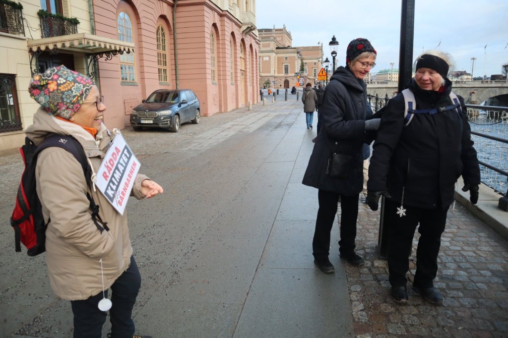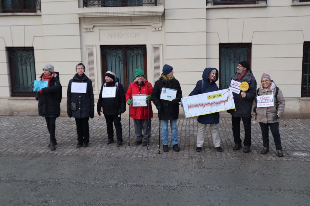 På plats igen utanför statsministerns bostad för att demonstrera för klimatet. Många intresserade passerade och nickade och log och en hel del intresserade och peppande kommentarer. Kanske det börjar trilla ner en och annan polett nu, att klimatkrisen kommer allt närmare samtidigt som det blir allt tydligare att Sveriges politiker – överlag – har ringa, eller inga åtgärder alls för att kunna följa Paris-avtatalet eller att anpassa våra samhällen efter ett annat klimat.